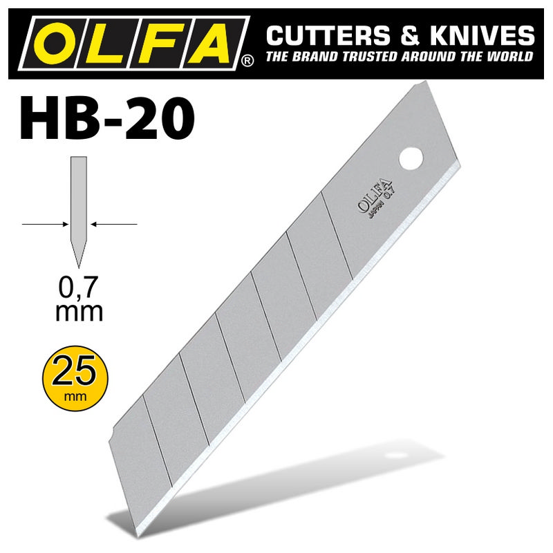 • This 25mm blade fits OLFA extra heavy-duty utility knives. 7 cutting edges per blade. 20 blades per pack.