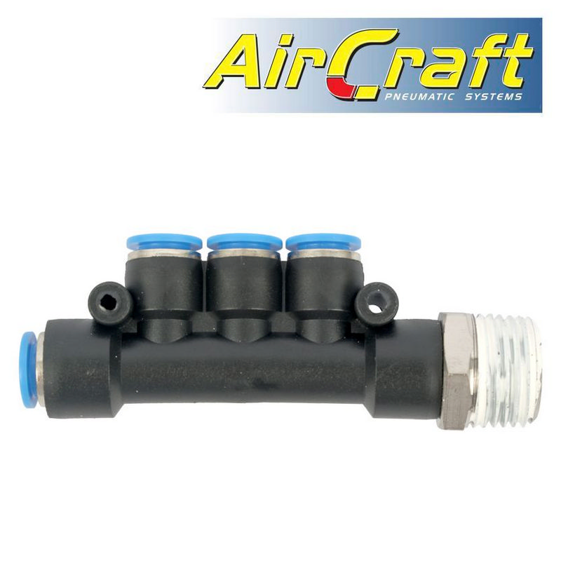 Pu Hose Fitting Manifold 4 X 8mm Port X 1/2"M