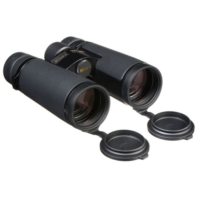 The chassis is built with a short bridge design, which presents more gripping surface and helps to reduce the overall weight. Made to survive use outdoors, the optical tubes are nitrogen-filled and o-ring sealed to make them not only fogproof when moving between extreme temperature changes, but also waterproof and submersible. The exterior has textured, rubberized panels that protect against knocks and drops, and offers a slip-resistant grip for sure handling in cold and wet conditions. Nikon includes tethered objective lens covers and ocular rainguard to ensure they cannot be lost easily and are ready for use at a moment's notice.