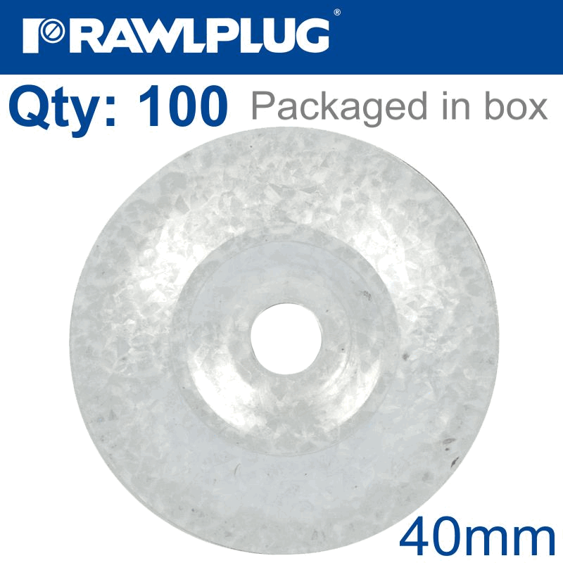 RAWLPLUG Round Washer 40Mm,6,5Mm With Aluminum-Zinc Coating Box Of 100