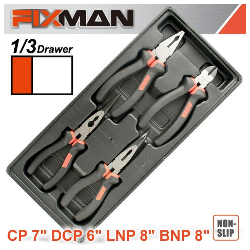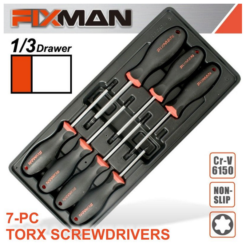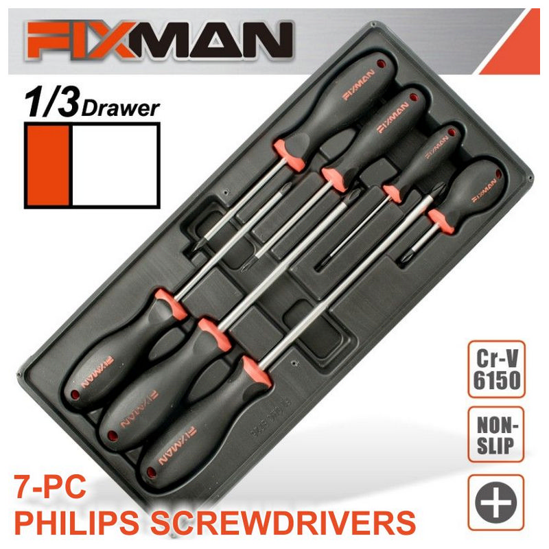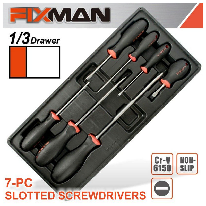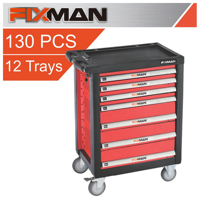 A 7 drawer cabinet complete with 12 trays of tools. Get this Fixman drawer roller cabinet and never have to shop for a single tool again. Its clean design and neat tool storage will ensure that you have all your require tools handy and space to work when taking any job.