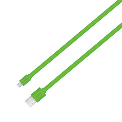 Durable charge & sync for smart devices, USB male to micro USB. Flat profile to ensure cable does not break easily due to folding. Features Flat design, not easy to wound High quality with soft smooth surface Color options avalaible according to choice and preference High speed charging & data sync with 2A test pass for all mobiles & tablets Specifications Cable length: 100cm Type: Micro USB cable Material: TPE our surface Color: Green Package Content: Charge / Sync Cable