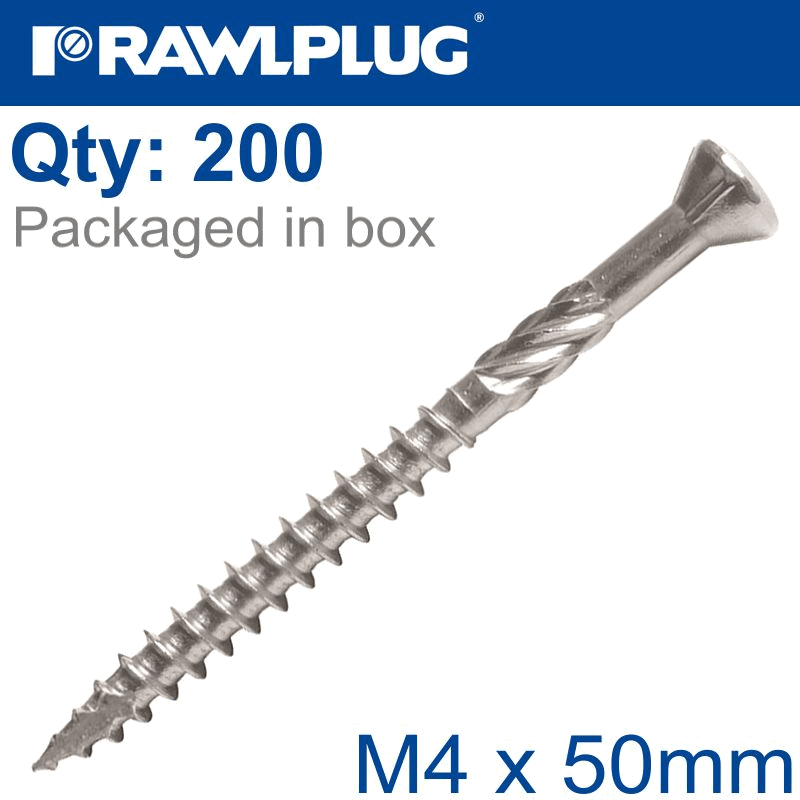 RAWLPLUG R-Dsx Screws M4 X 50X30 A2 Ss X200-Box
