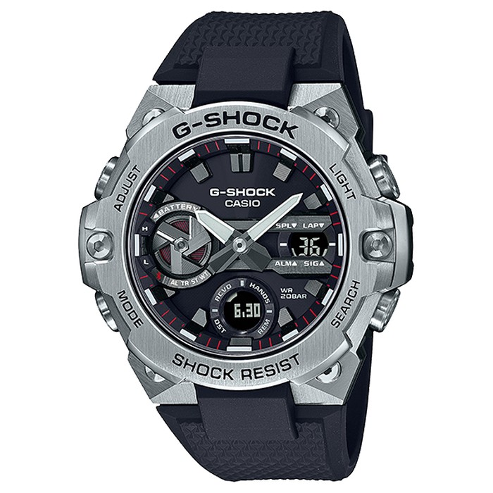 Introducing new color variations to the lineup of slim G-STEEL GST-B400 models with new, improved designs made possible by a thin module and carbon core guard structure. There is a standard model in this lineup, the GST-B400 with silver color face and resin band.