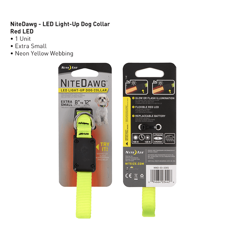 - Nite Ize Nite Dawg Led Dog Collar - Xs - Neon Yellow (NND-03-33XS)