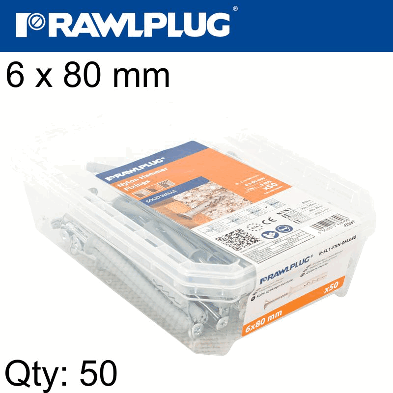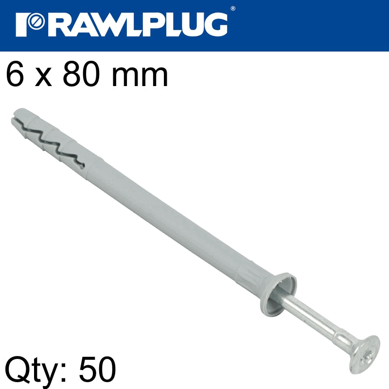 RAWLPLUG Hammer In Fixing 6 X 80Mm Csk 50 Psc Per Tub