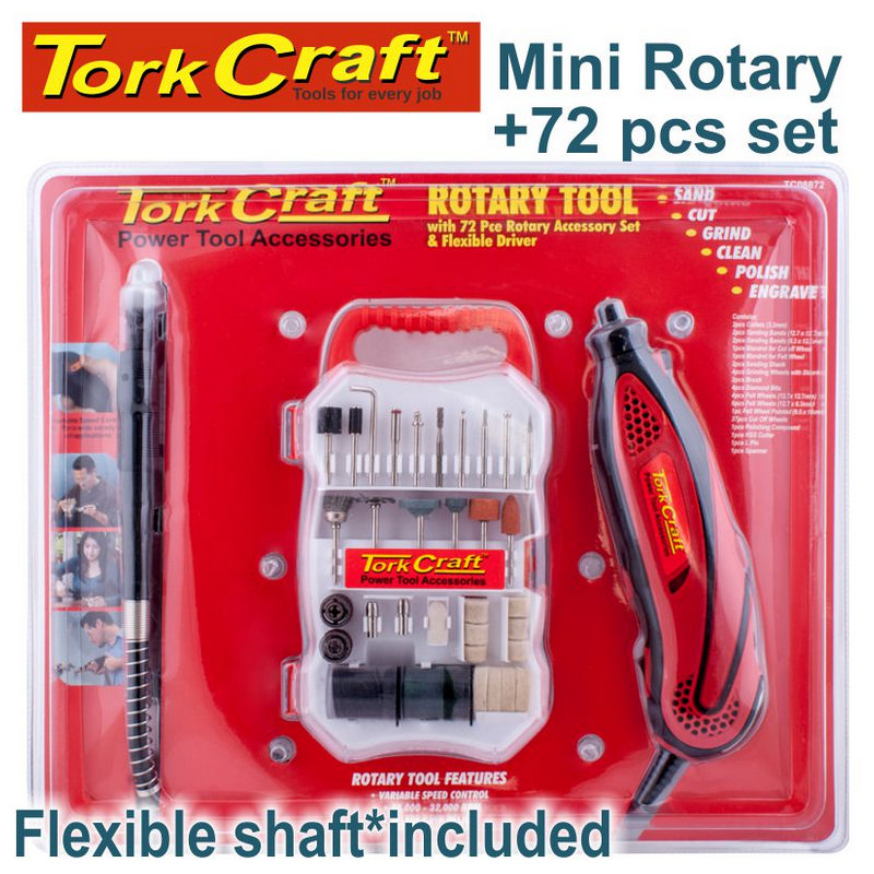 Tork Craft Mini Rotary Tool With Acc Set 72pc with flexible shaft