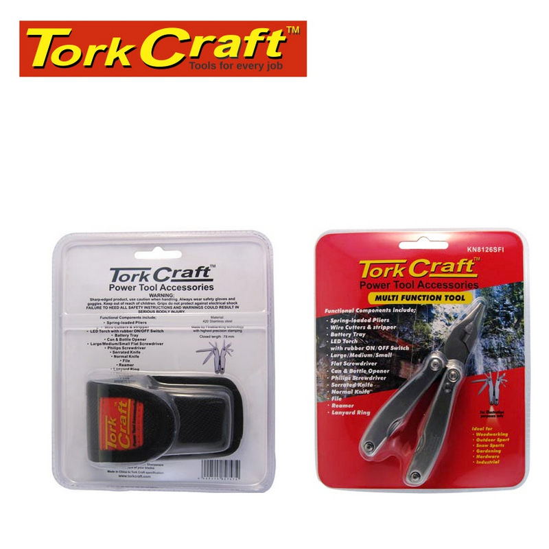Tork Craft Multitool Silver Mini With Led Light With Nylon Pouch In Blister