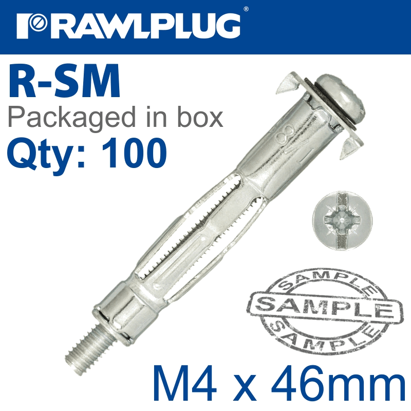 RAWLPLUG Interset Fixing For Drywall M4X46Mm X100-Box 8Mm Drill