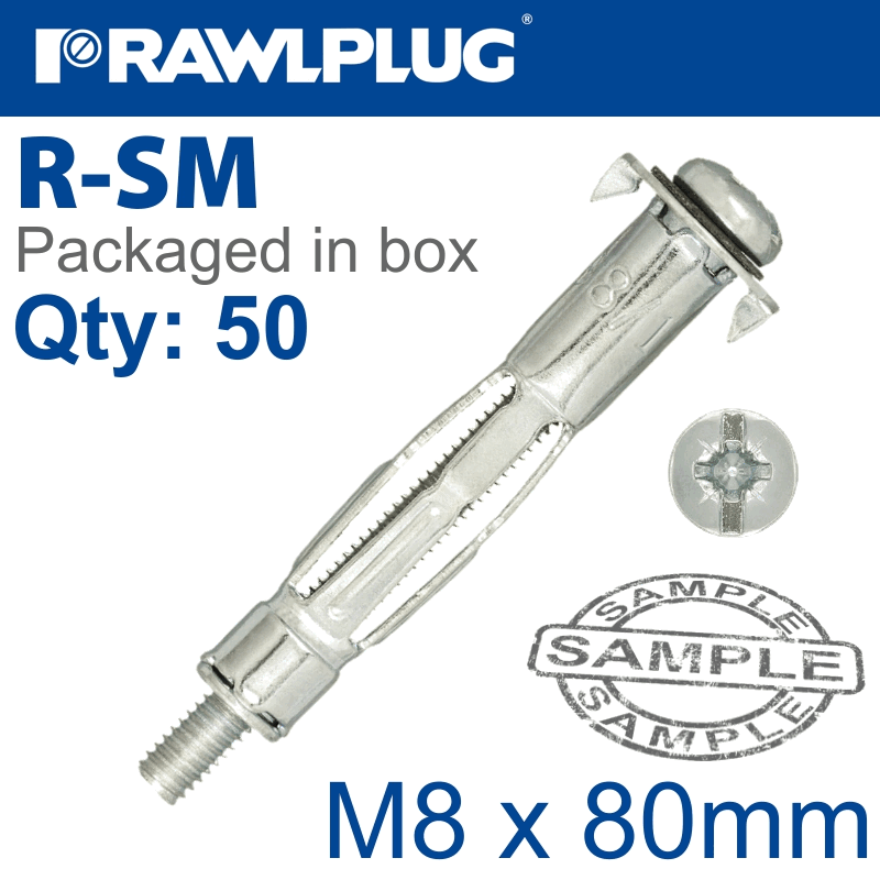 RAWLPLUG Interset Fixings For Drywalls M8X80Mm Box Of 50