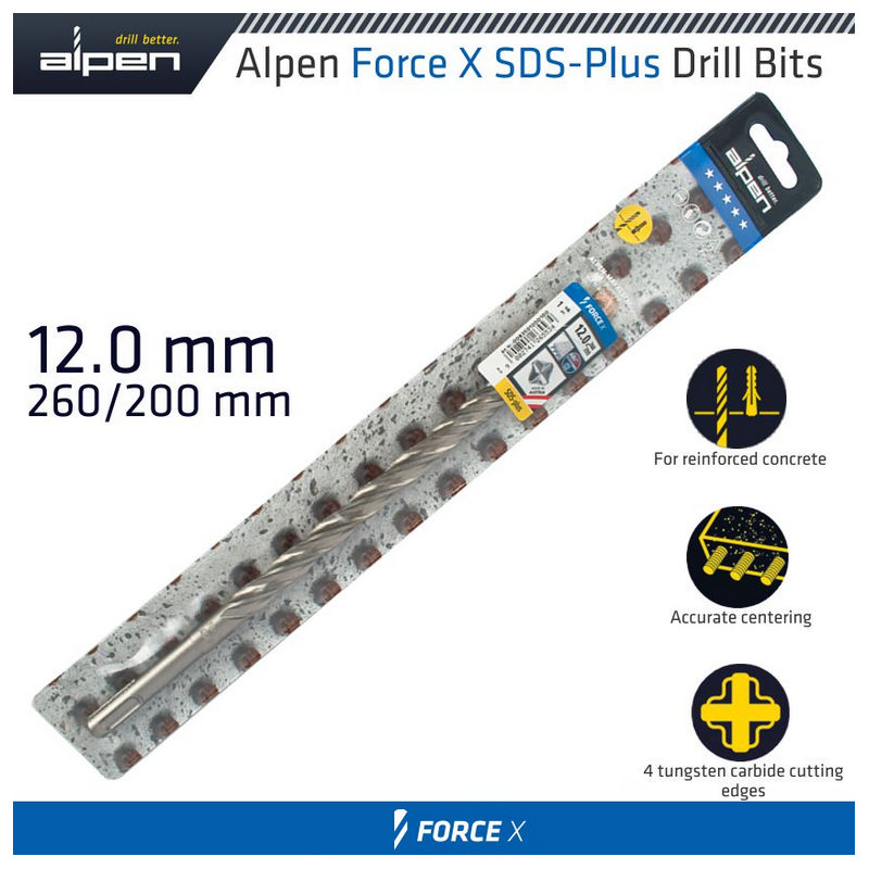 Alpen Force X 12.0 X 260/200 Sds-Plus Drill Bit X4 Cutting Edges