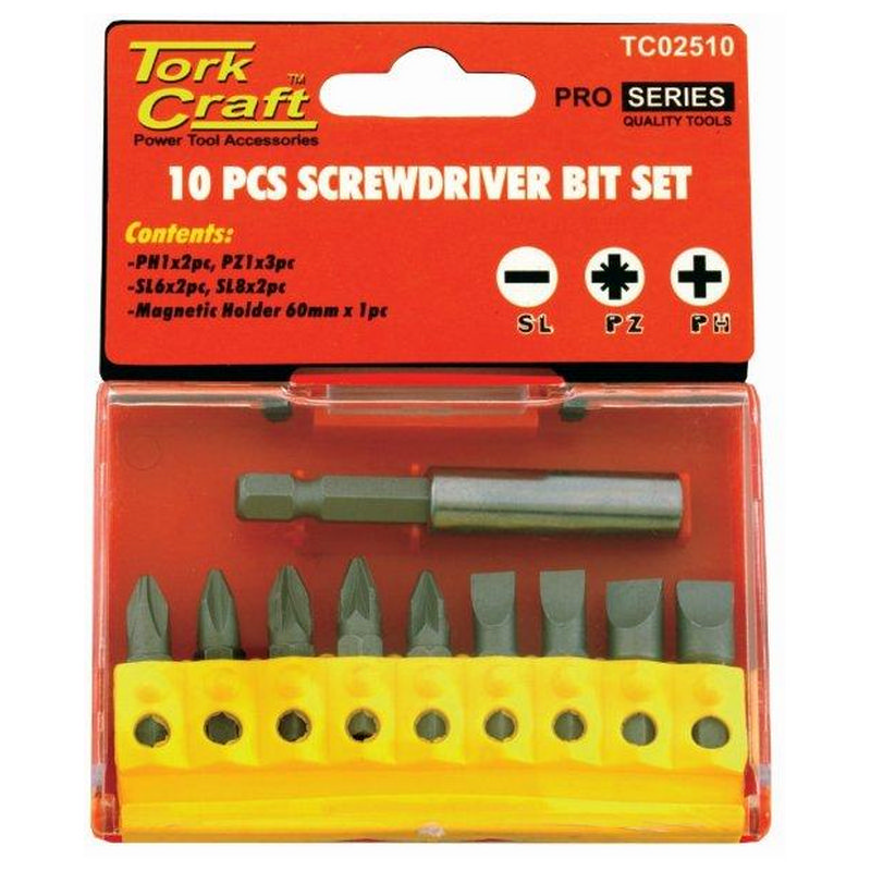 Tork Craft Screwdriver Bit Set 10pcs(Ph2x2,Pz2x3slotted6mmx2,8mmx2)