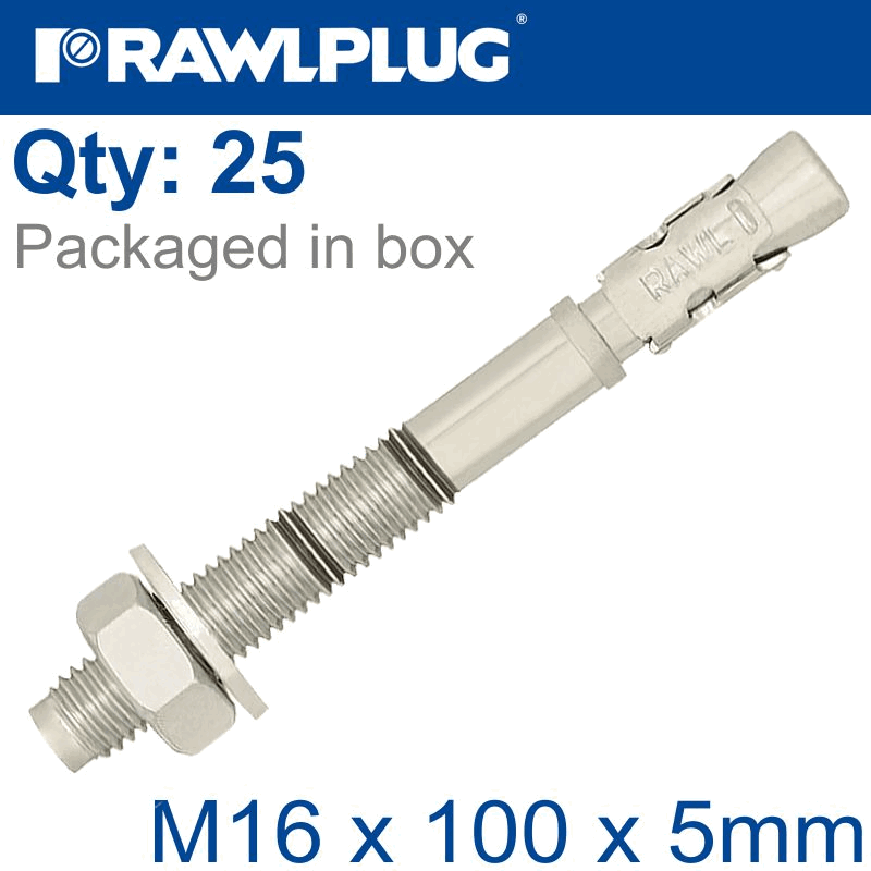 RAWLPLUG Throughbolt M16X100X5Mm X25 -Box