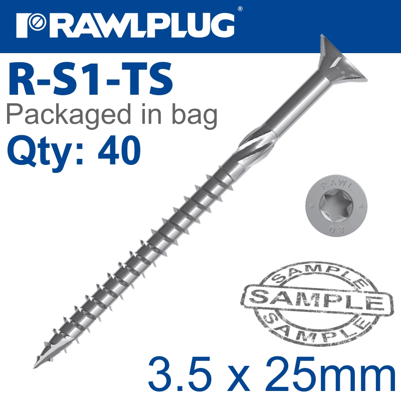 RAWLPLUG R-Ts Hardened Screw 3.5X25Mm X40 Per Bag