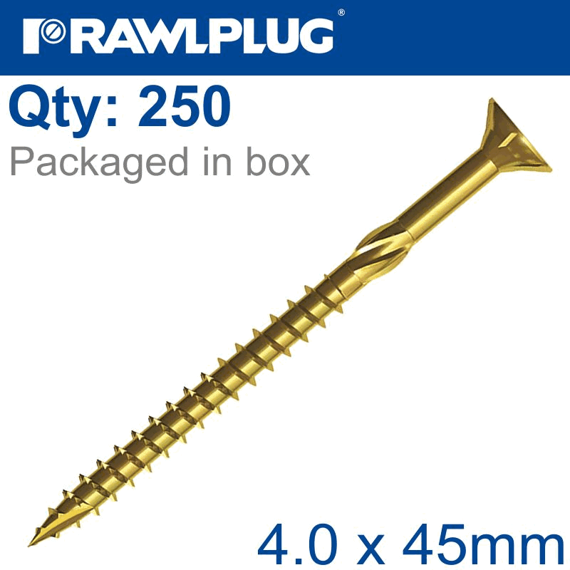 RAWLPLUG Torx T20 Chipboard Screw 4.0X45Mm X250-Box