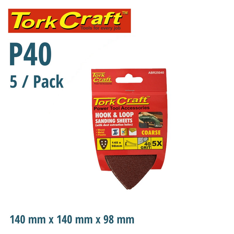 Sanding Triangle Vel Sheet 40 Grit 140 X 140 X 98mm 5/Pack Wit